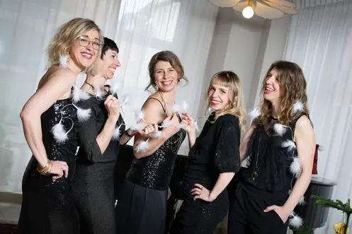 Le groupe a constitué un magnifique répertoire arrangé pour 5 voix - parfois a capella, parfois accompagnées au piano ou au ukulele - les voix des Snieulettes s’arrangent dans une rare complicité harmonique, fruit de plus de 100 ans combinés d’expérience de chant.