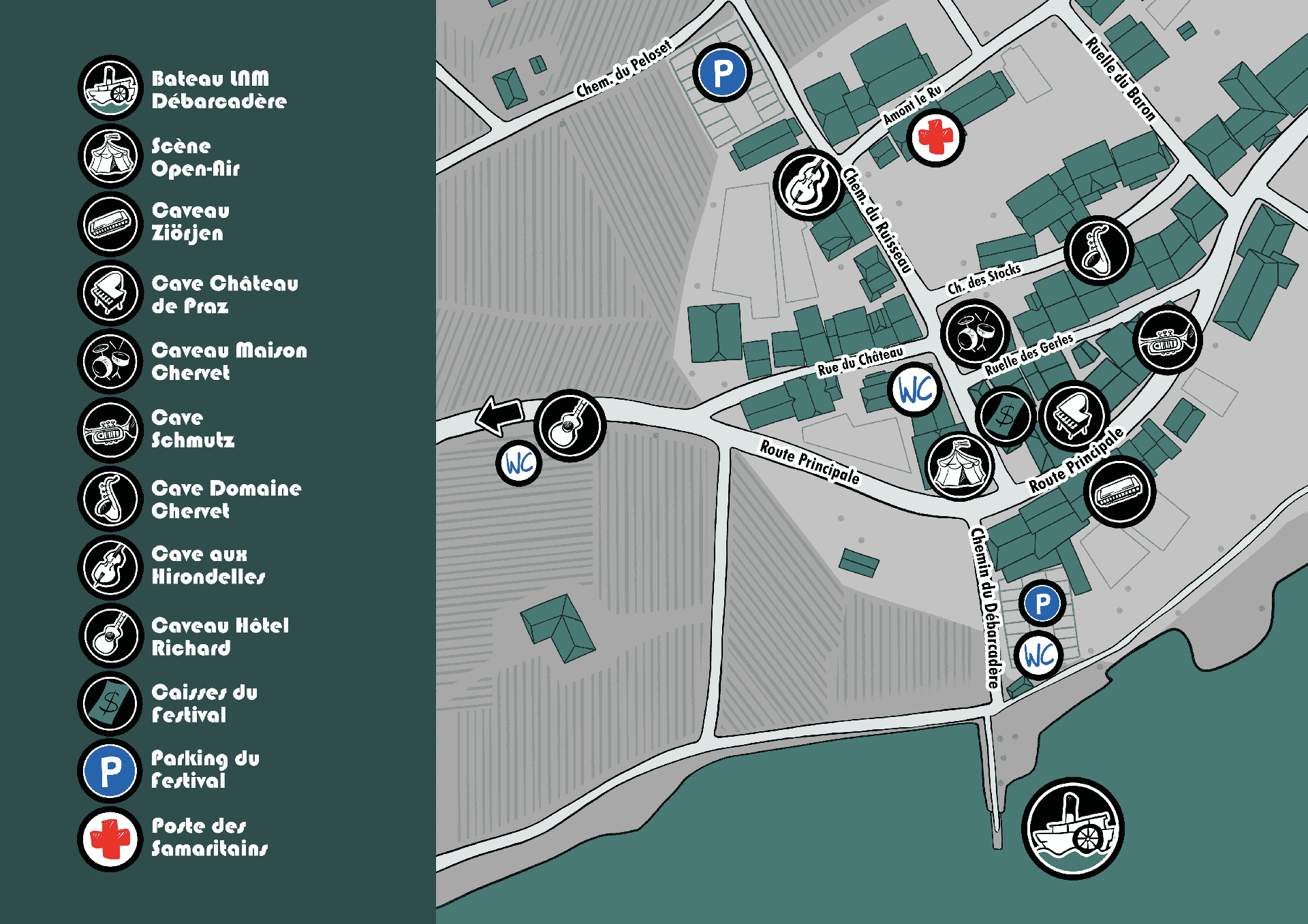 Natürlich könnt ihr auch mit dem Auto anreisen – gebt einfach „Praz Vully“ in euer GPS ein, um direkt zum Festival zu gelangen.